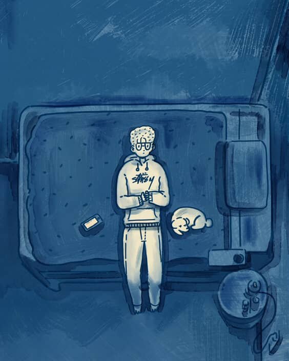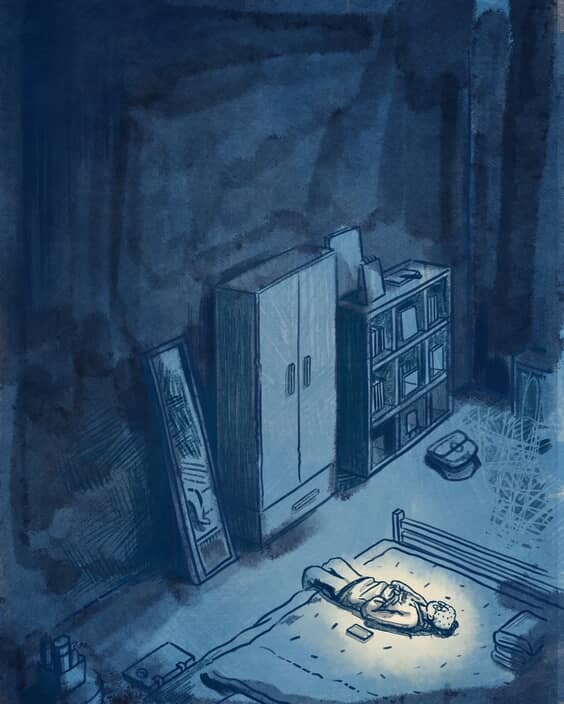 Kyoon’s work retains the emotional storytelling and subtlety of tradition while incorporating modern themes like mental health, isolation, and digital-age introspection. Their process often begins with an unshakable feeling or sentence, which is then developed visually through sketches and color, often while listening to melancholic music. The artist mainly works with digital illustration, valuing the freedom it allows with layers, textures, and color.